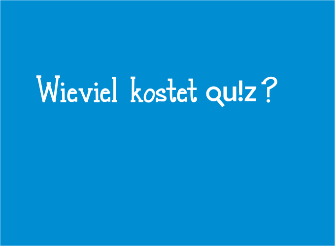 Ein Quiz kostet Pauschal 150€ plus 10€ pro Teilnehmer. Bei individualisierter Spieldauer werden die Preise entsprechend angepasst. Genauere Informationen erhaltet Ihr über das Kontaktformular.